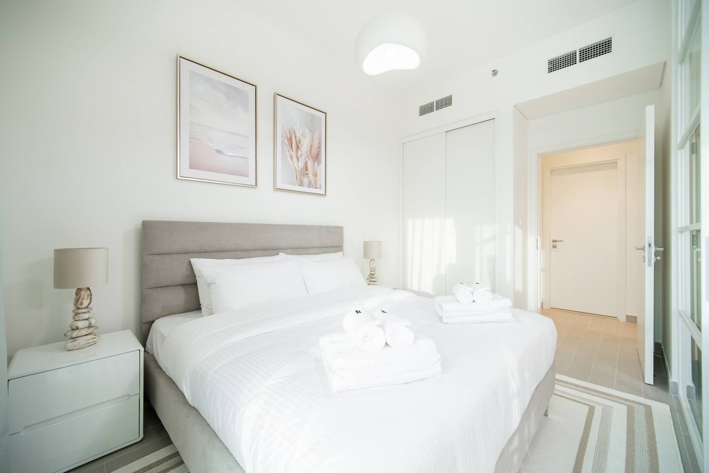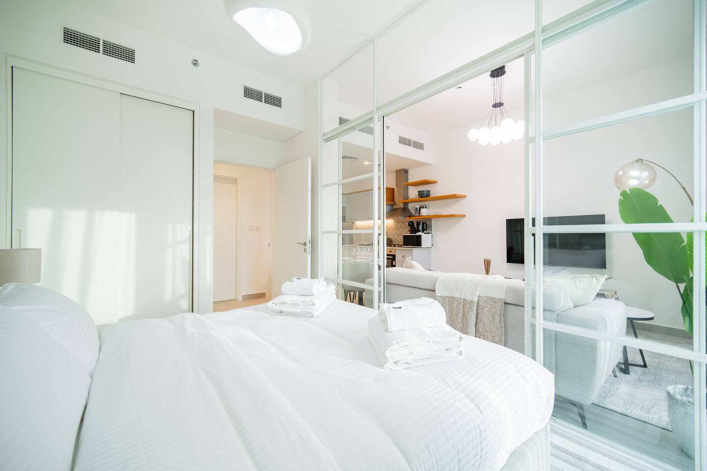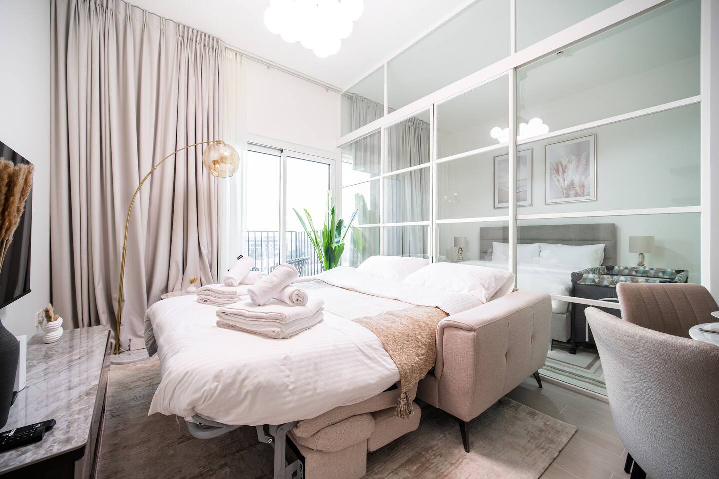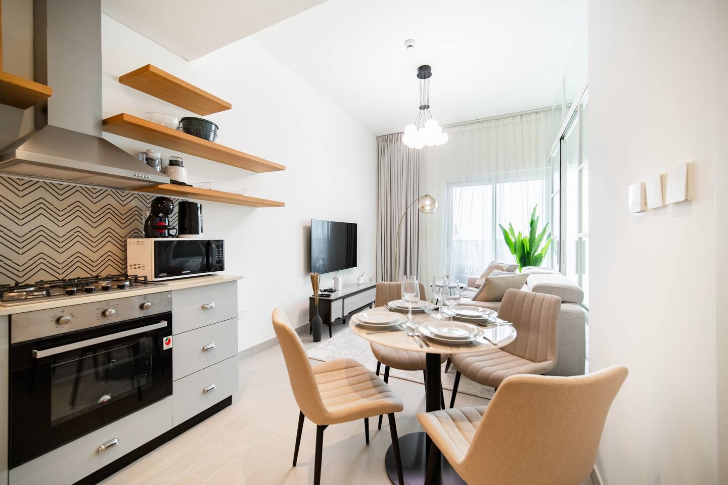 If your brain’s saying “I just want something calm, clean, and not a headache”—this is it. This peaceful 1BR in Golfville, Dubai Hills is baby-ready, spotless, and set in a quiet, family-friendly neighborhood. Guests say it’s cozy, easy, and just works. Dubai Hills Mall is 5 minutes by car. Burj Khalifa, Marina, and Miracle Garden? All 15–20 mins away. No surprises. Just rest, Wi-Fi, crib, and fresh towels. You’re good.