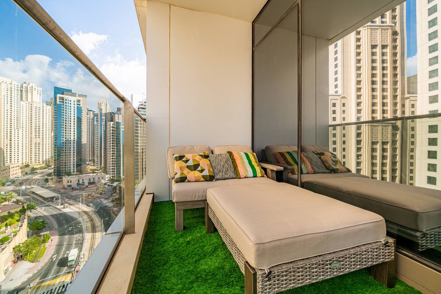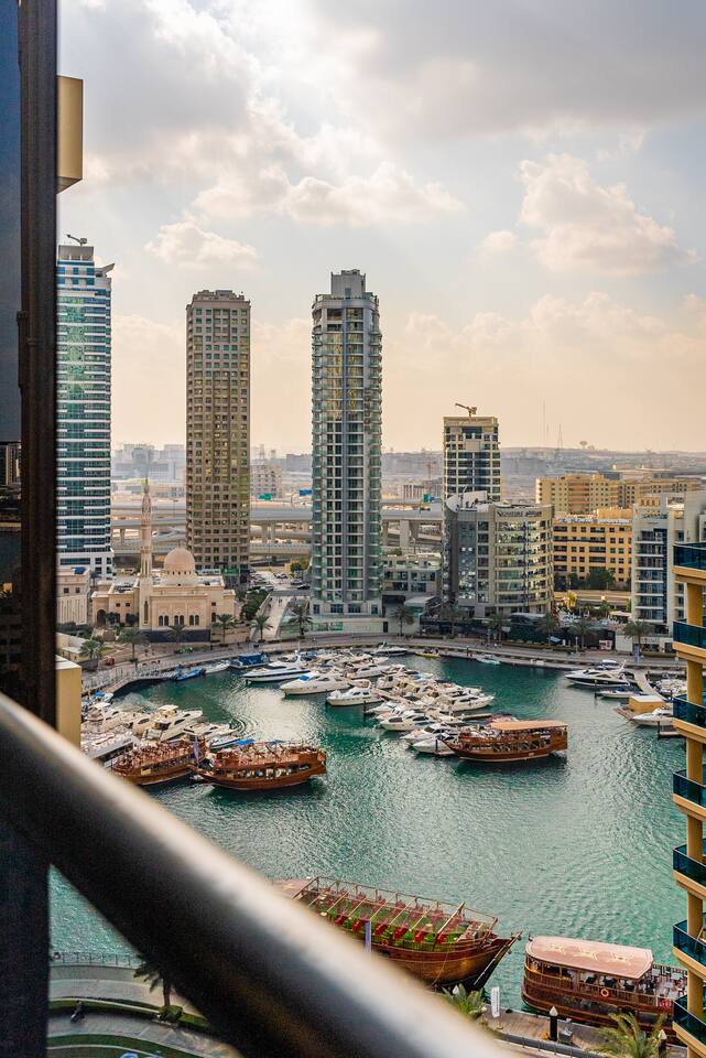 Nothing beats the Marina views from these 2 spacious balconies that double as terraces—not our words, but our guests'. One moment, you're on the 13th floor sipping coffee with skyscrapers; the next, counting yachts like a millionaire. 5 min to JBR Beach, steps from tram, metro & Marina Walk. rooftop infinity pool, sauna, gym & 24/7 security. The fantastic bed guarantees sleep so good you might miss checkout. Fast check-in, responsive host & Carrefour downstairs.
