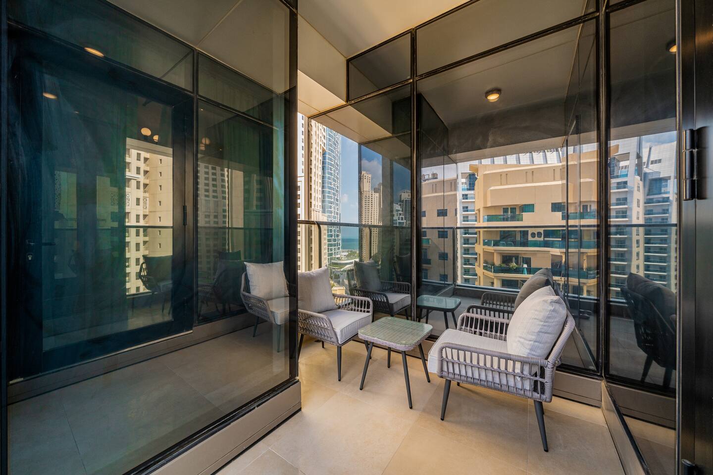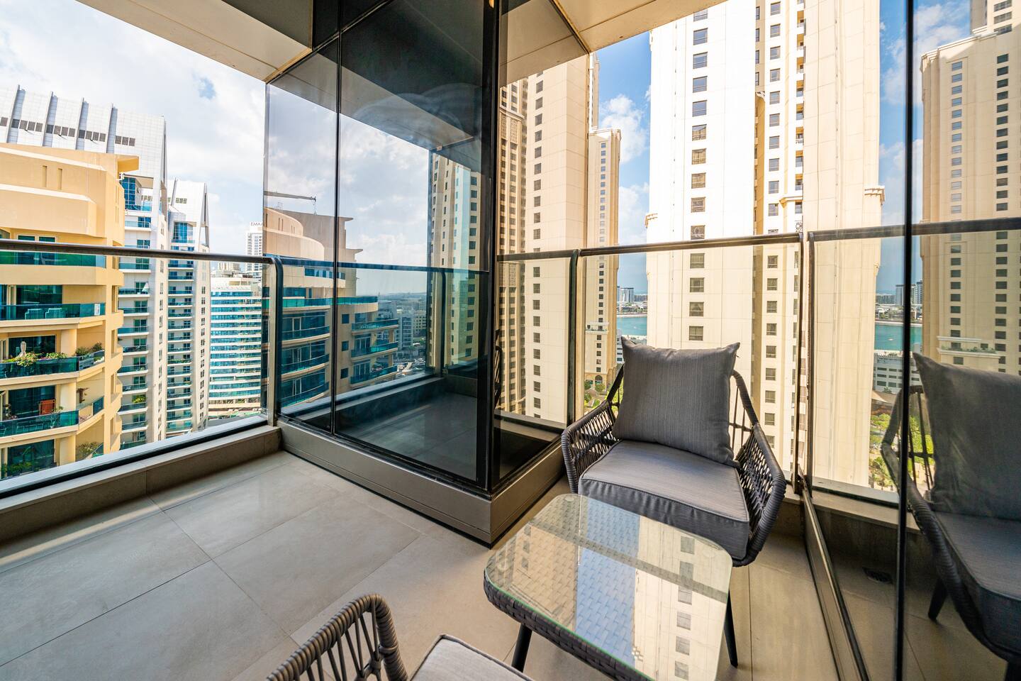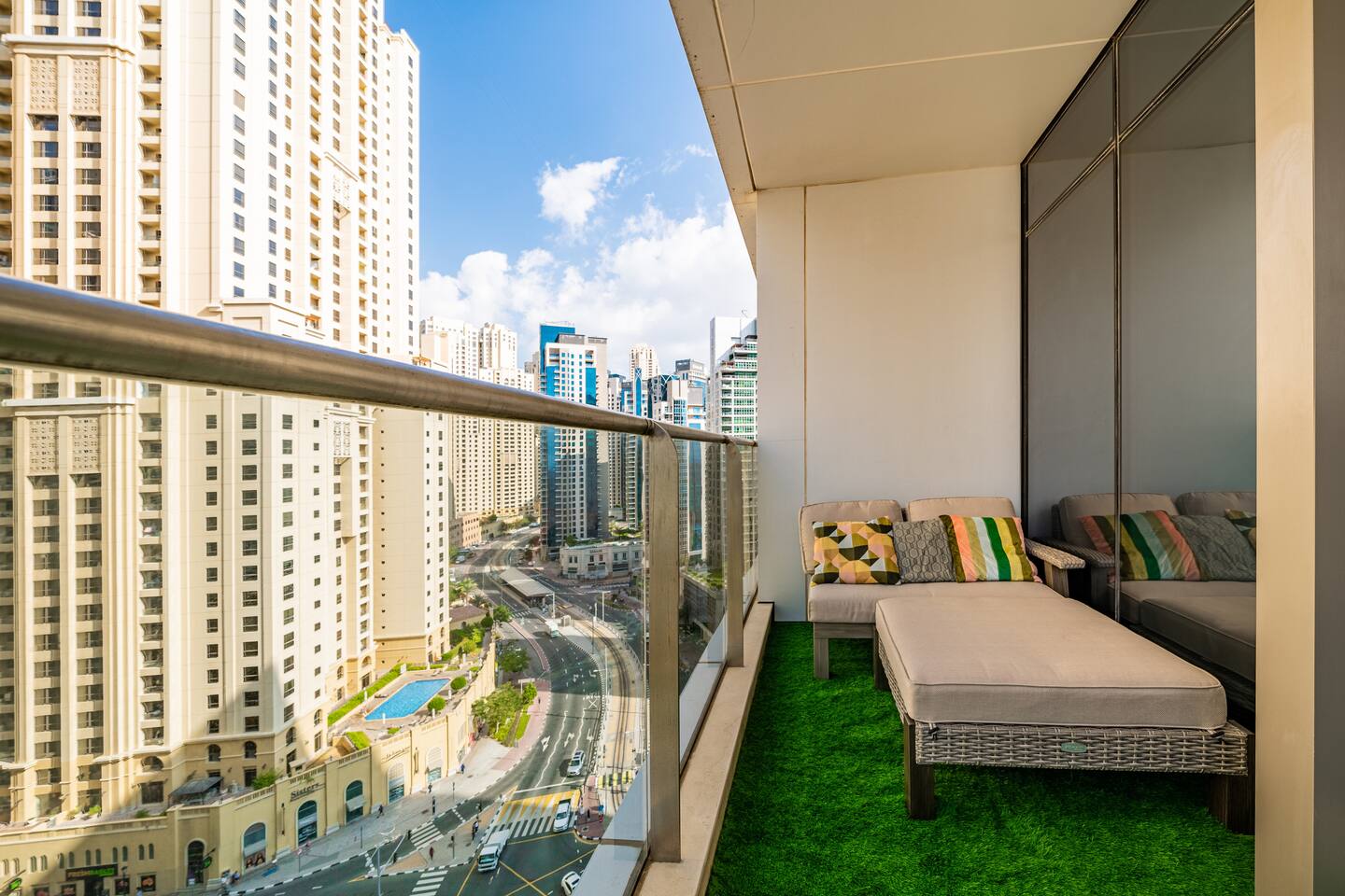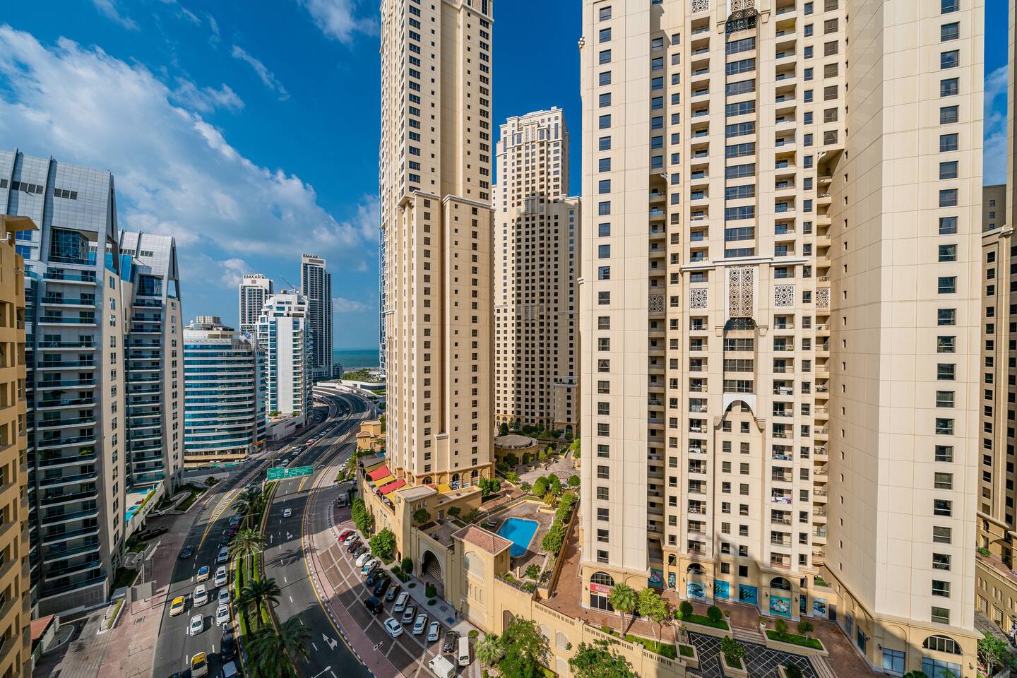 Sparkle Towers is located in the heart of Dubai Marina, one of the city's most prestigious waterfront destinations. Our guests are just steps from The Walk at JBR, Marina Beach, and Bluewaters Island, surrounded by world-class dining, shopping, and entertainment. The tower offers direct Marina access, a scenic promenade, and easy connectivity via the JBR tram station and DMCC metro station. With Carrefour, cafes, and essential stores right downstairs, convenience is unmatched.