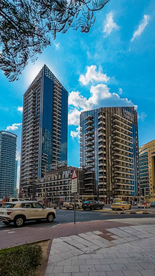 Getting around from Sparkle Towers is effortless, with JBR 1 Tram Station just a 7-minute walk away, connecting you to Dubai Marina and beyond. The DMCC Metro Station is 10 minutes on foot, providing direct access to Downtown Dubai, Business Bay, and DXB International Airport in about 40 minutes. Taxis and ride-hailing services are readily available, while the Dubai Marina Water Bus offers a scenic way to explore the waterfront. With JBR Beach, dining, and shopping just steps away, walking is often the best option.