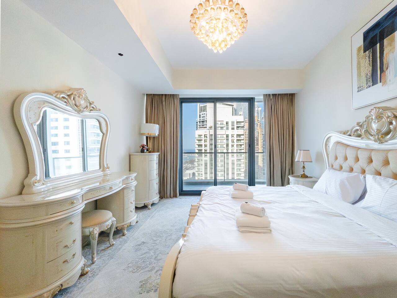 Trident Grand Residence puts you in the heart of Dubai Marina, surrounded by skyscrapers, waterfront dining, and endless entertainment. Just a 10-minute walk to JBR Beach and Marina Walk, you’re steps from top restaurants, cafes, and shopping. The building itself has a pool, sky gym, tennis court, and spa—so whether you want to relax or stay active, it’s all right here. Easy access to metro and tram makes exploring Dubai a breeze.
