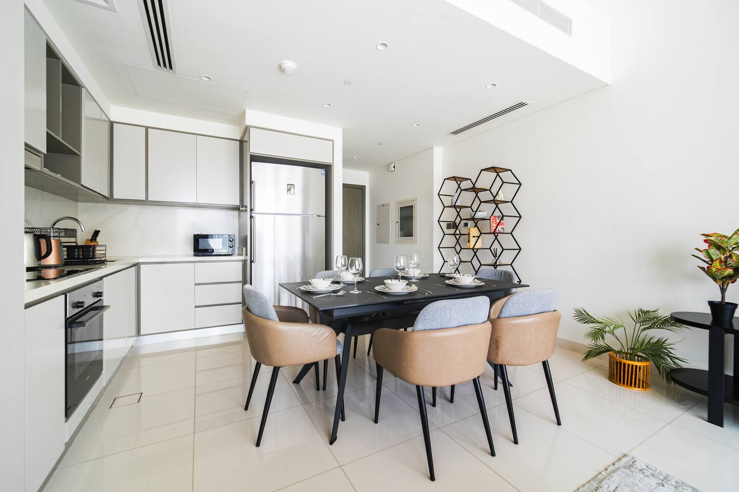 Searching for a beachfront 2BR on Palm Jumeirah? This Sunrise Bay Tower 1 home is bright, modern, and calm, with warm morning light and a balcony that opens to fresh sea air. You get fast Wi-Fi, smooth check-in, a full kitchen, king bed, twin beds, baby gear, beach access, pool, and gym. Plus, Dubai Marina, Bluewaters, and Atlantis are only minutes away. Any questions? Just send a message.