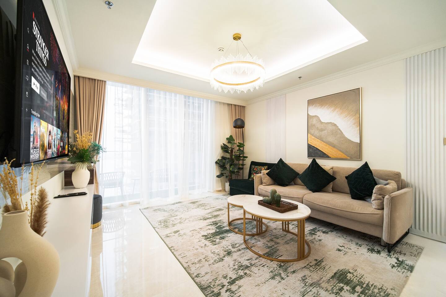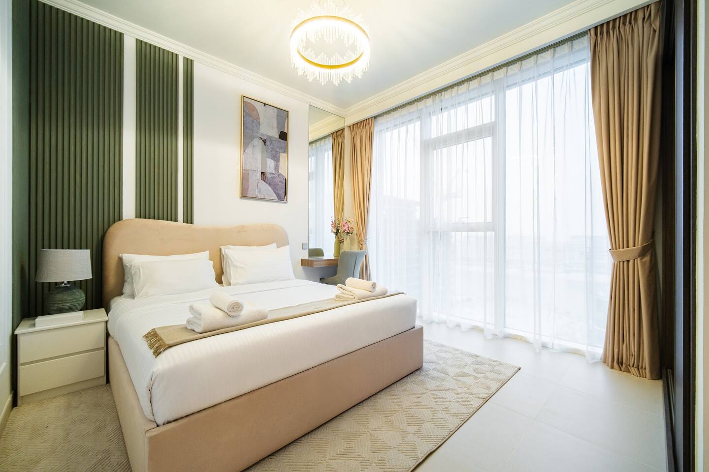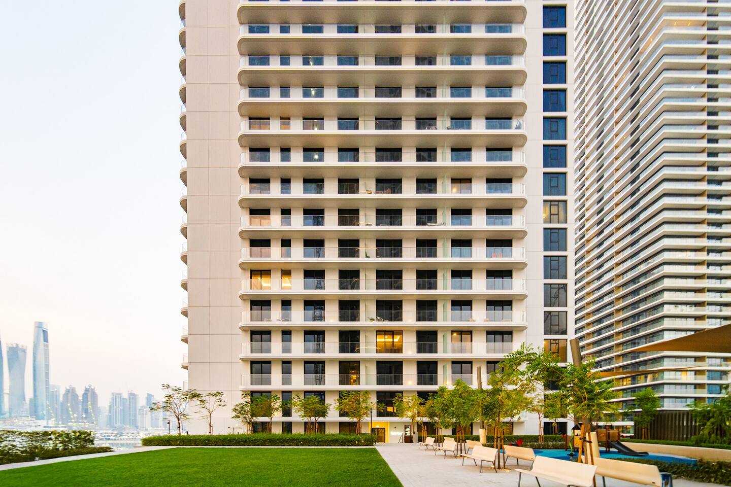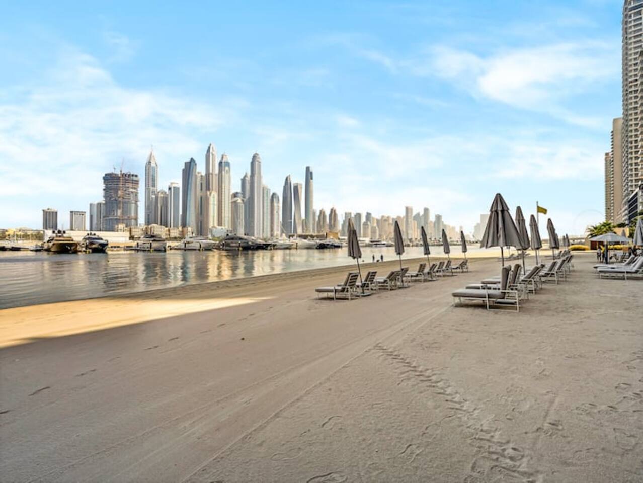 Wake up to sea views from the 14th floor and step down to your own private beach and infinity pool at Emaar Beachfront, Dubai Harbour. Picture mornings walking to JBR and Dubai Marina, or a short drive to Marina Promenade dining, Marina Mall, Dubai Harbour Marina, and Palm Jumeirah attractions. Plan a family day at Atlantis Aquaventure, evenings at The Pointe, and a city trip to Burj Khalifa and Dubai Mall. With free baby gear waiting, you just arrive and enjoy.