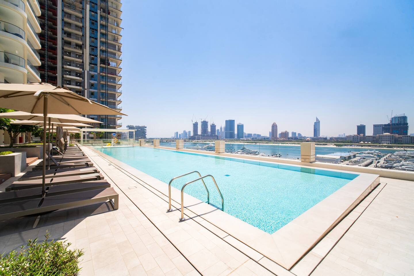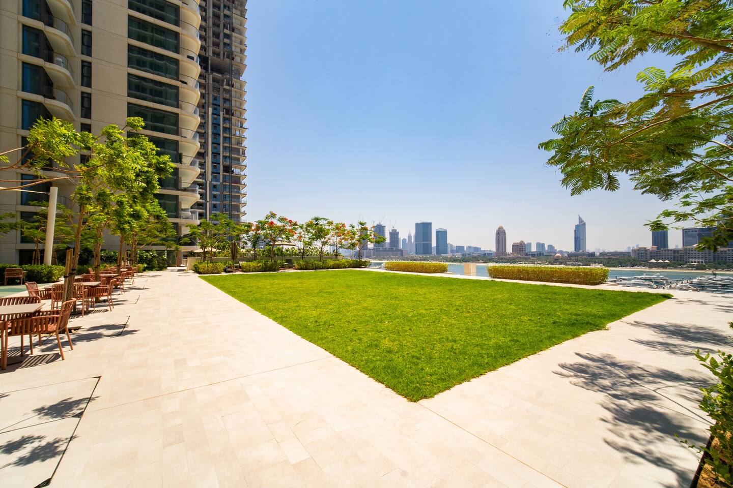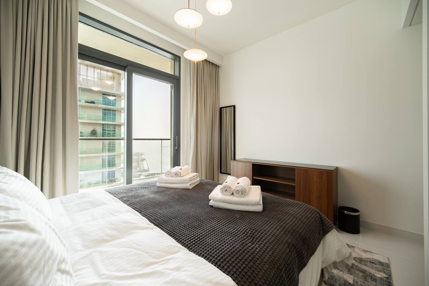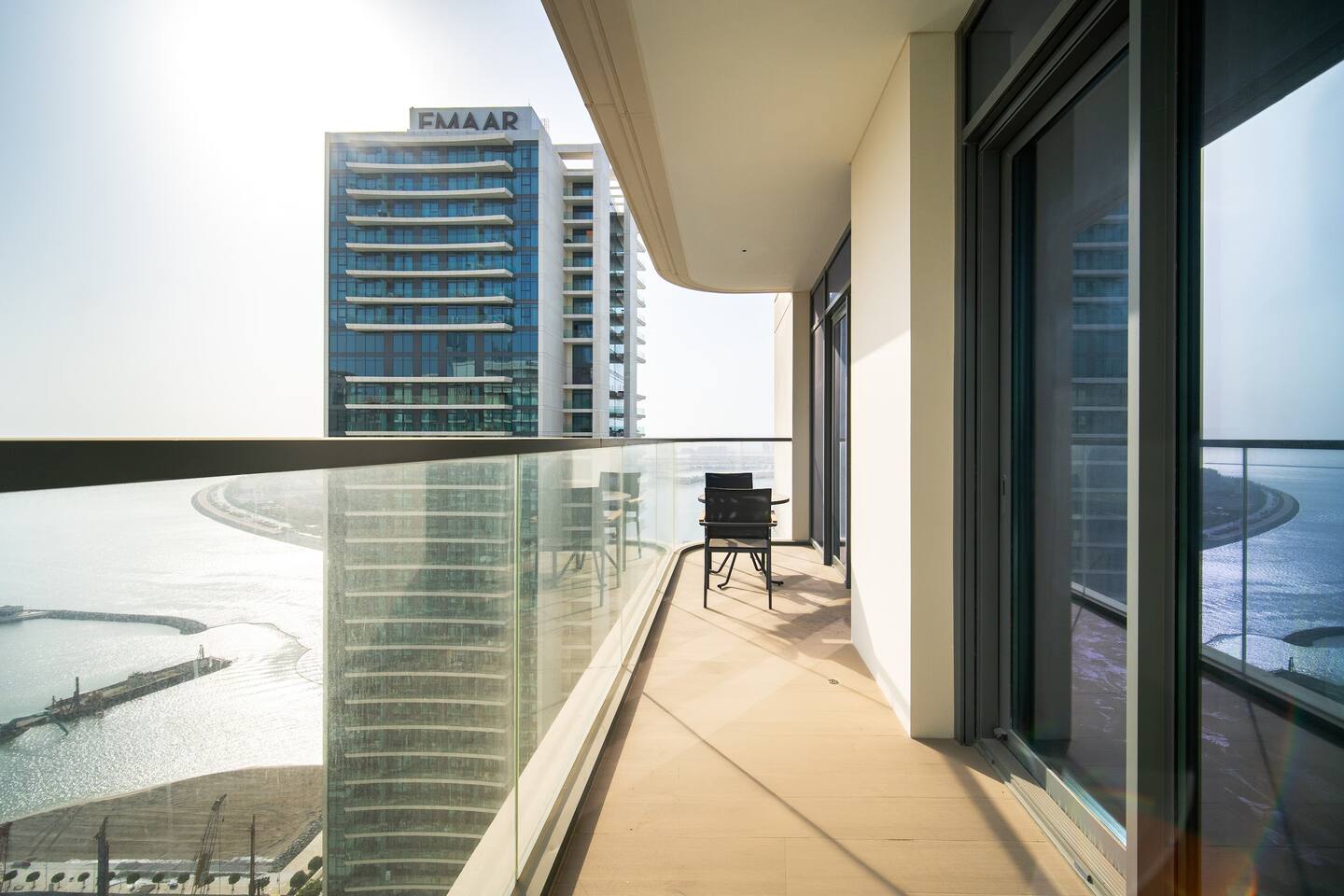 This apartment is in Marina Vista Tower at Emaar Beachfront. You’re just a few minutes from Dubai Marina, JBR, The Palm, shops, restaurants, and cafes. It’s a quiet spot with private beach access—right where the city meets the sea.