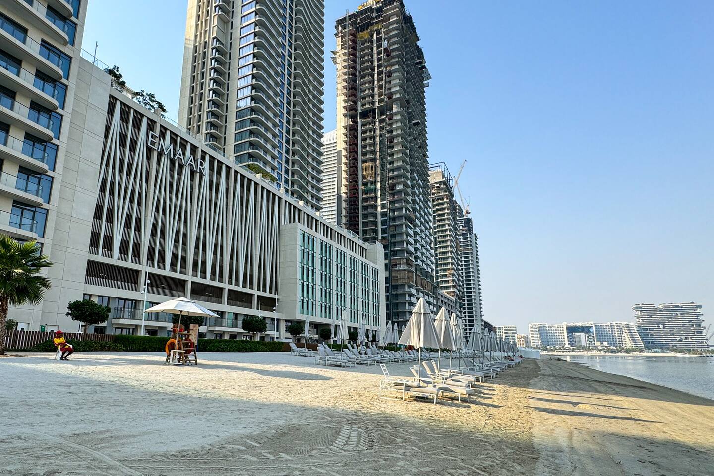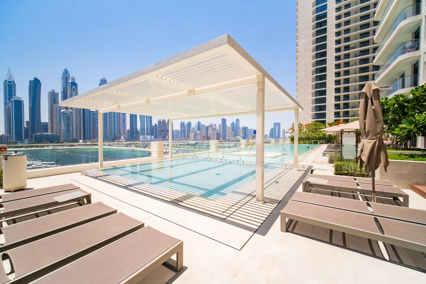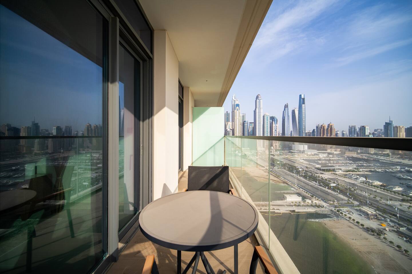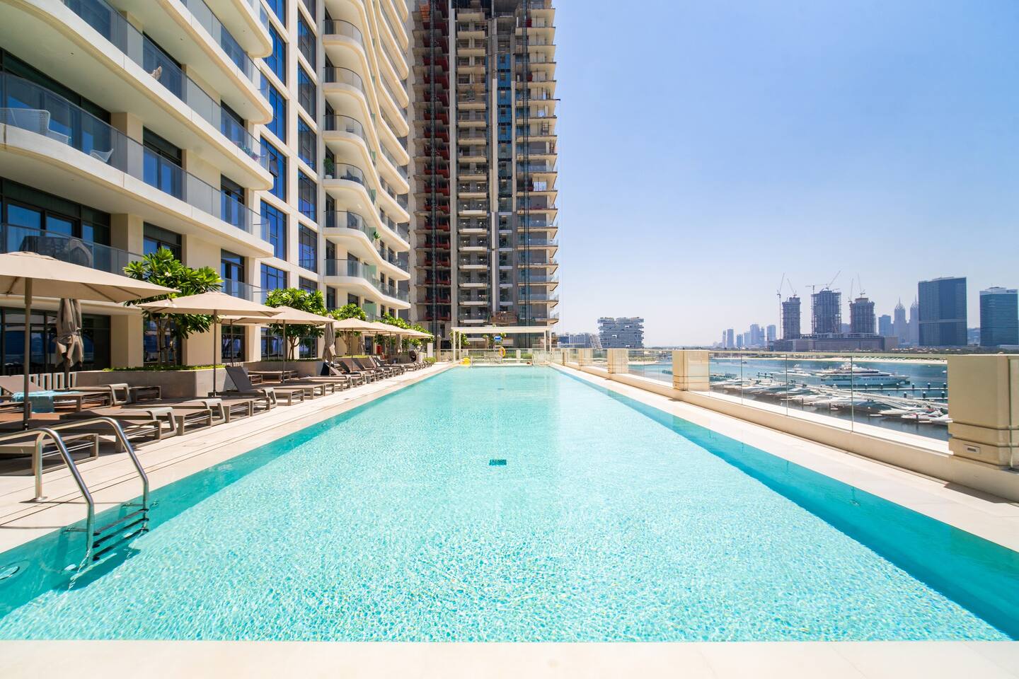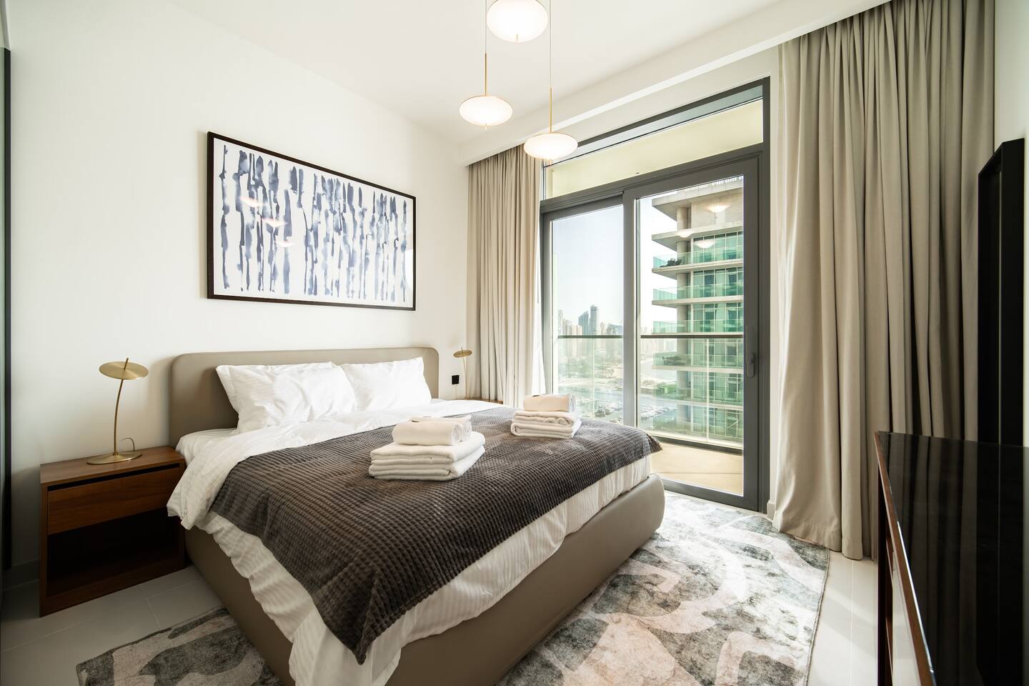 This apartment is in Marina Vista Tower at Emaar Beachfront. You’re just a few minutes from Dubai Marina, JBR, The Palm, shops, restaurants, and cafes. It’s a quiet spot with private beach access—right where the city meets the sea.