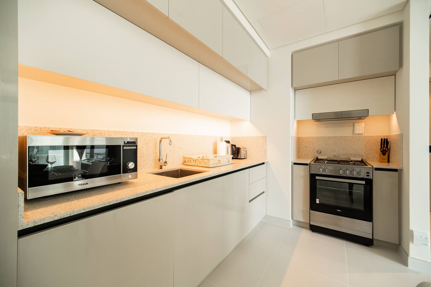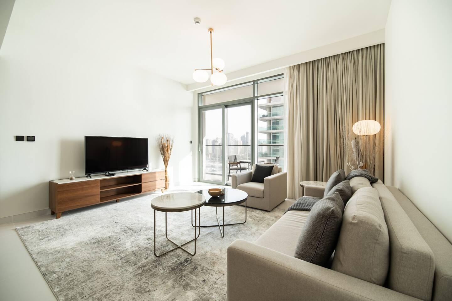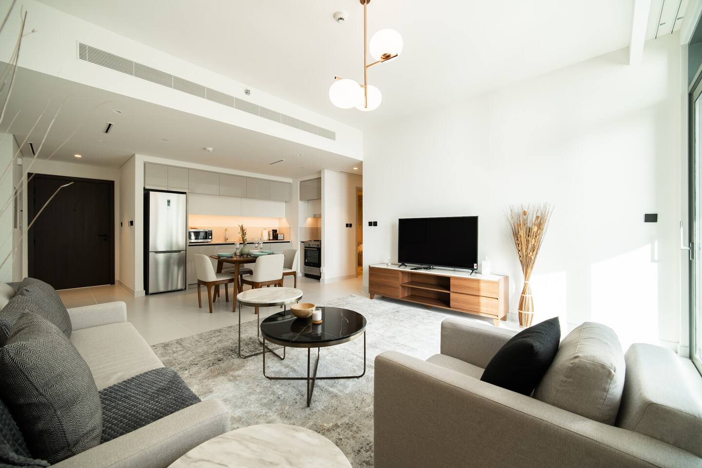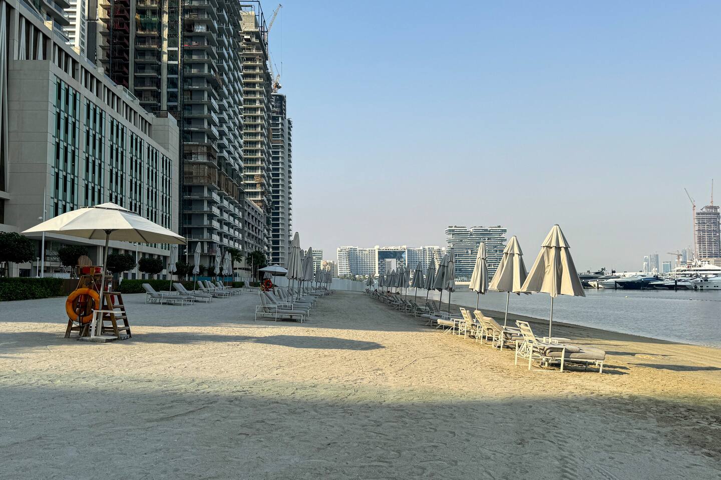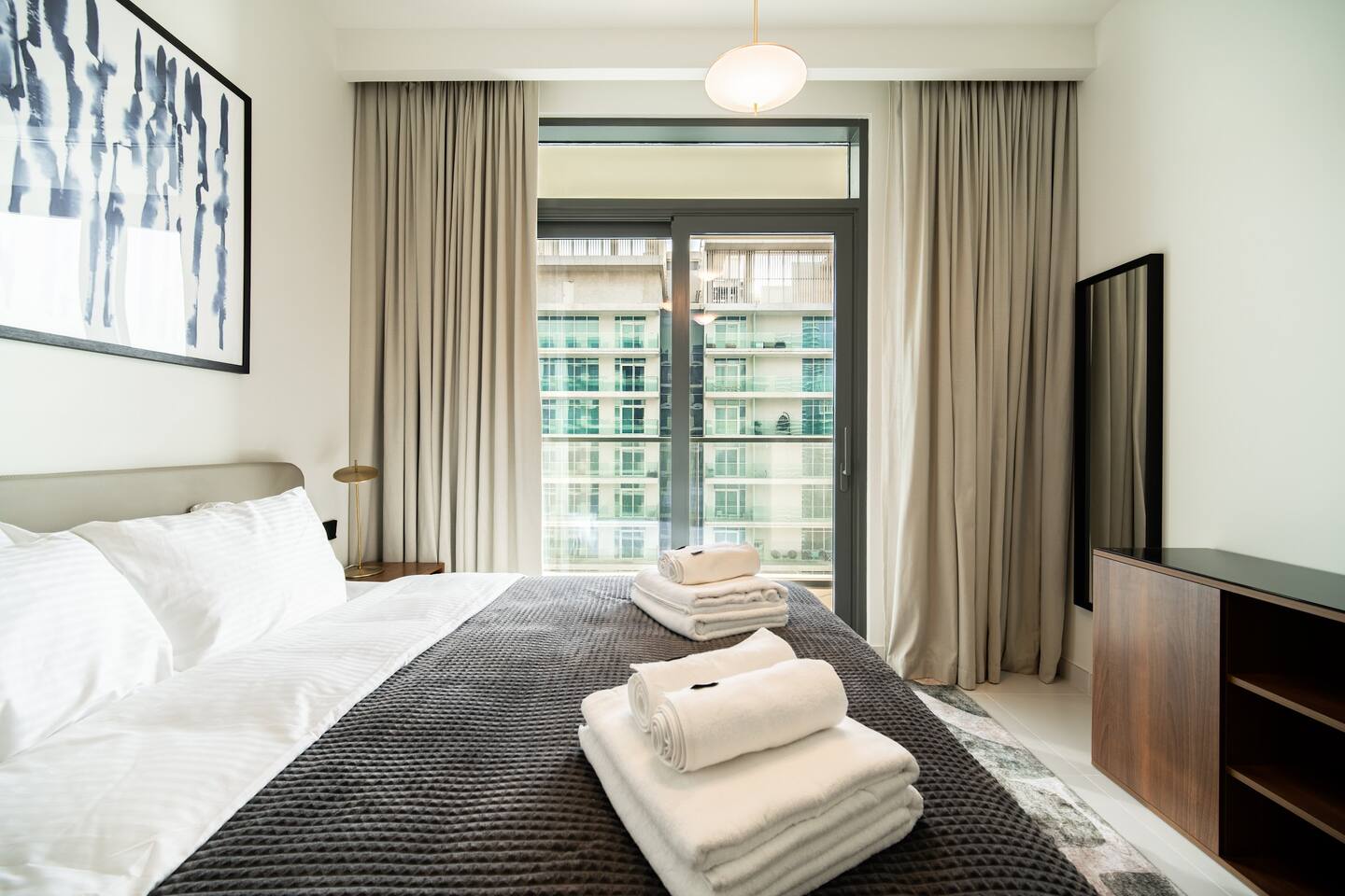This apartment is in Marina Vista Tower at Emaar Beachfront. You’re just a few minutes from Dubai Marina, JBR, The Palm, shops, restaurants, and cafes. It’s a quiet spot with private beach access—right where the city meets the sea.