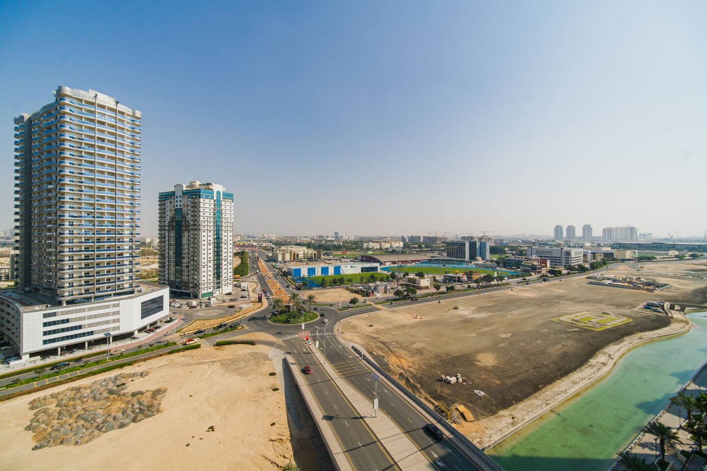 The apartment is located in Dubai Sports City, a quiet residential area with open spaces and easy road access. It’s well suited for guests who want a calm place to stay while remaining connected to the rest of Dubai. You’re close to the Dubai International Cricket Stadium, sports facilities, and everyday essentials like supermarkets, cafés, and pharmacies. The area offers quick access to major roads, making it easy to reach Downtown Dubai, Business Bay, Dubai Marina, and the airport by car or taxi. Dubai Sports City is popular with business travelers, long-stay guests, and families looking for space, convenience, and a more relaxed environment than the city center.