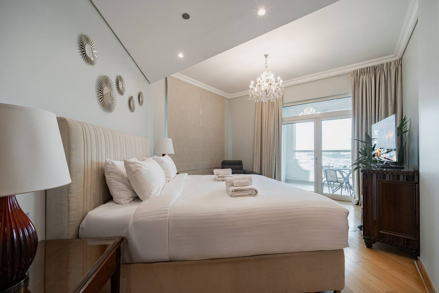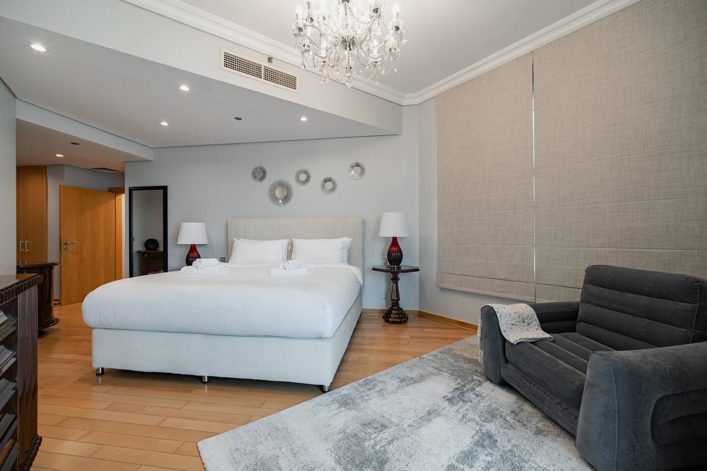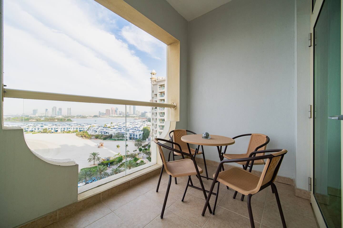 The apartment is in Al Nabat, Shoreline Residences, on the trunk of Palm Jumeirah. You’re a 3-minute drive from Nakheel Mall, Palm West Beach, and Club Vista Mare. Al Ittihad Park, Spinneys supermarket, and Life Pharmacy are all within walking distance. The Palm Monorail is a 5-minute walk. Taxis and ride-hailing apps are easily available. Sheikh Zayed Road is accessible by car in under 10 minutes. Nearby attractions include Dubai Marina (15 min), Mall of the Emirates (15 min), and Burj Al Arab (15 min).