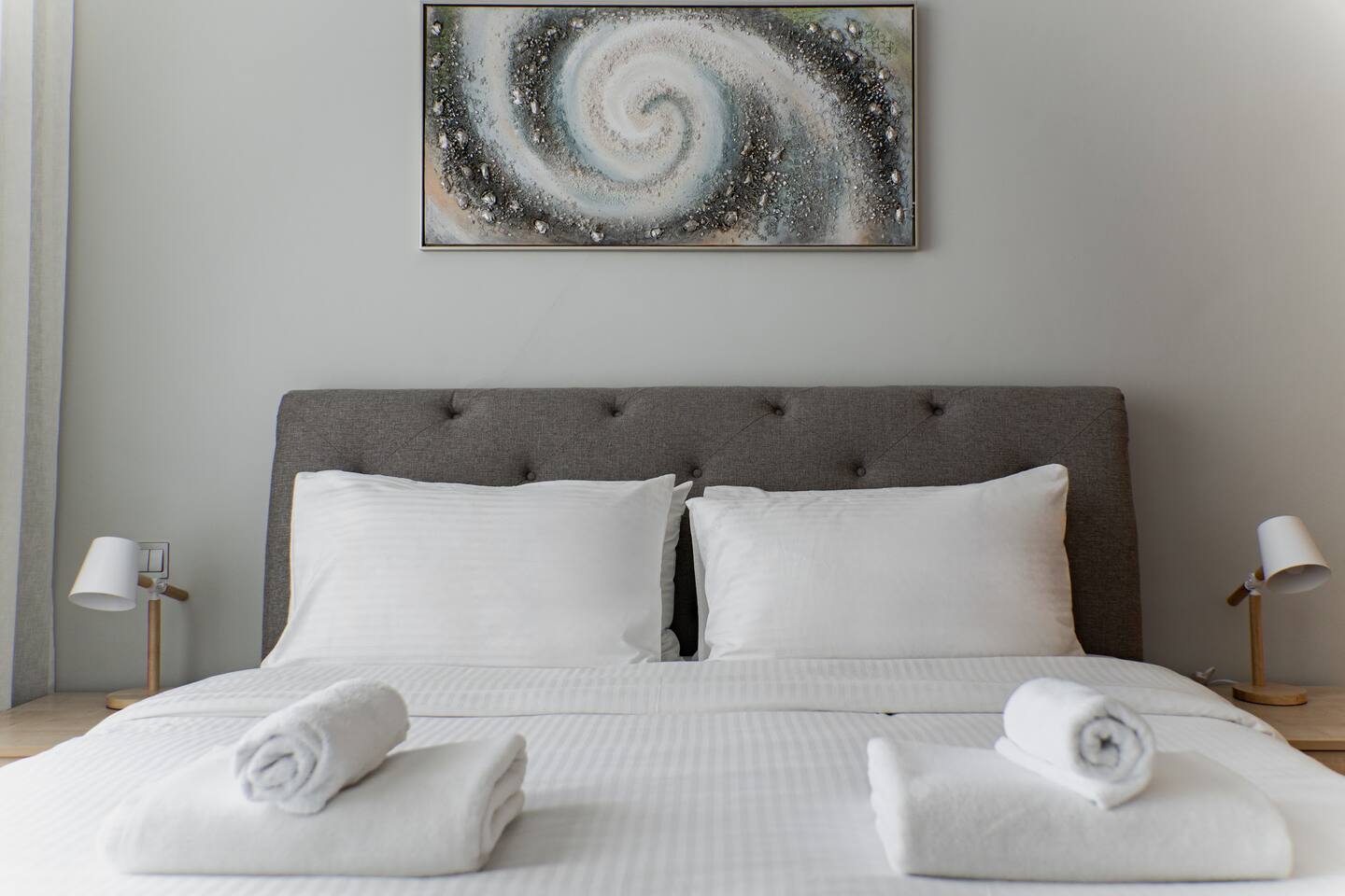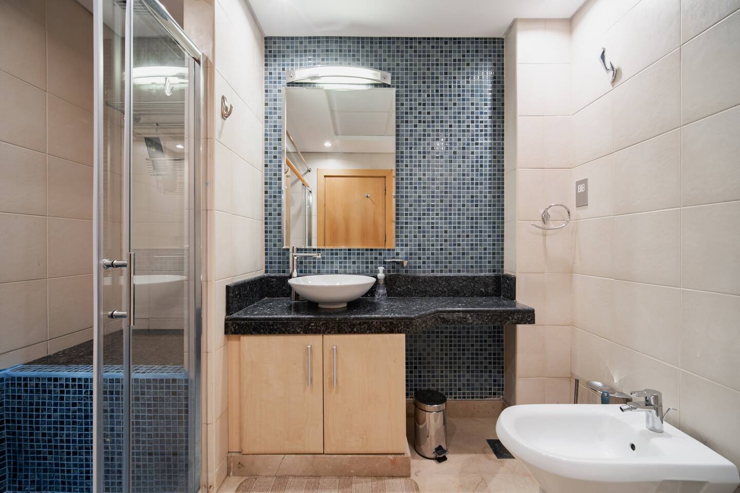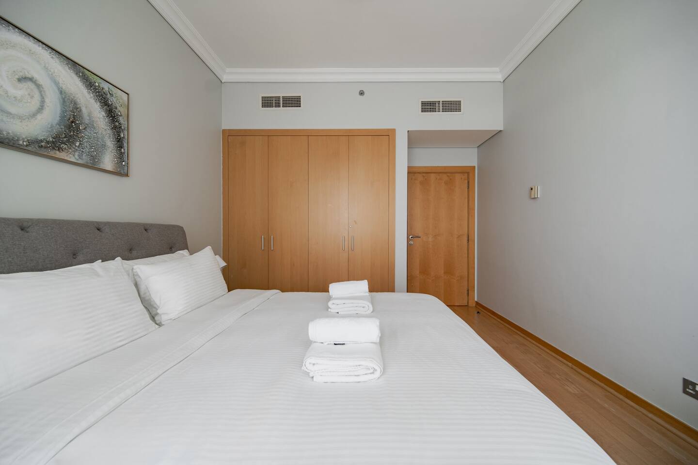 The apartment is in Al Nabat, Shoreline Residences, on the trunk of Palm Jumeirah. You’re a 3-minute drive from Nakheel Mall, Palm West Beach, and Club Vista Mare. Al Ittihad Park, Spinneys supermarket, and Life Pharmacy are all within walking distance. The Palm Monorail is a 5-minute walk. Taxis and ride-hailing apps are easily available. Sheikh Zayed Road is accessible by car in under 10 minutes. Nearby attractions include Dubai Marina (15 min), Mall of the Emirates (15 min), and Burj Al Arab (15 min).
