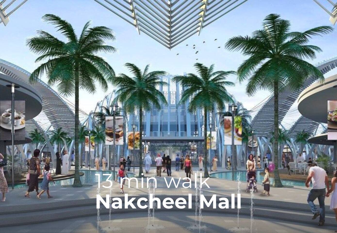 ▪️ 3 min drive to Nakheel Mall ▪️ 5 min drive to Palm West Beach & Club Vista Mare ▪️ 10 min drive to Aquaventure Waterpark & The Pointe ▪️ 15 min drive to Dubai Marina & Mall of the Emirates ▪️ 15 min drive to Burj Al Arab ▪️ 20 min drive to Burj Khalifa & Dubai Mall ▪️ Palm Monorail Station – 5 min walk ▪️ Taxis and ride apps (Careem/Uber) available 24/7 ▪️ Free underground parking included for guests